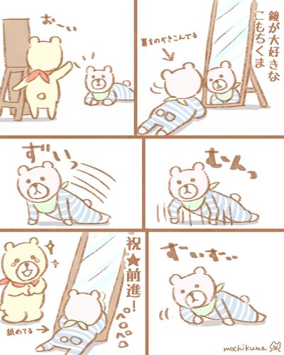 こんにちは。もちくまです(*´(エ)`*) 早いものでもうすぐ8ヵ月半です・・・! この前ようやくズリバイでの前進に成功しました!ヾ(*´▽`*)ノ 鏡で釣ったら来てくれました(*´∀`*) しかしなんだか想像と違うというか・・・ ほふく前進みたいなのを想像してたんですが…